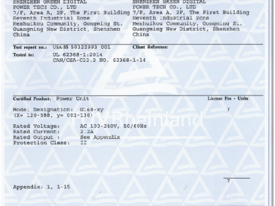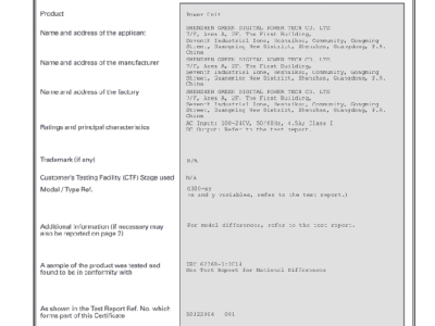 Shenzhen Green Digital Power Tech Co. Ltd SMPS and charger products has passed c···