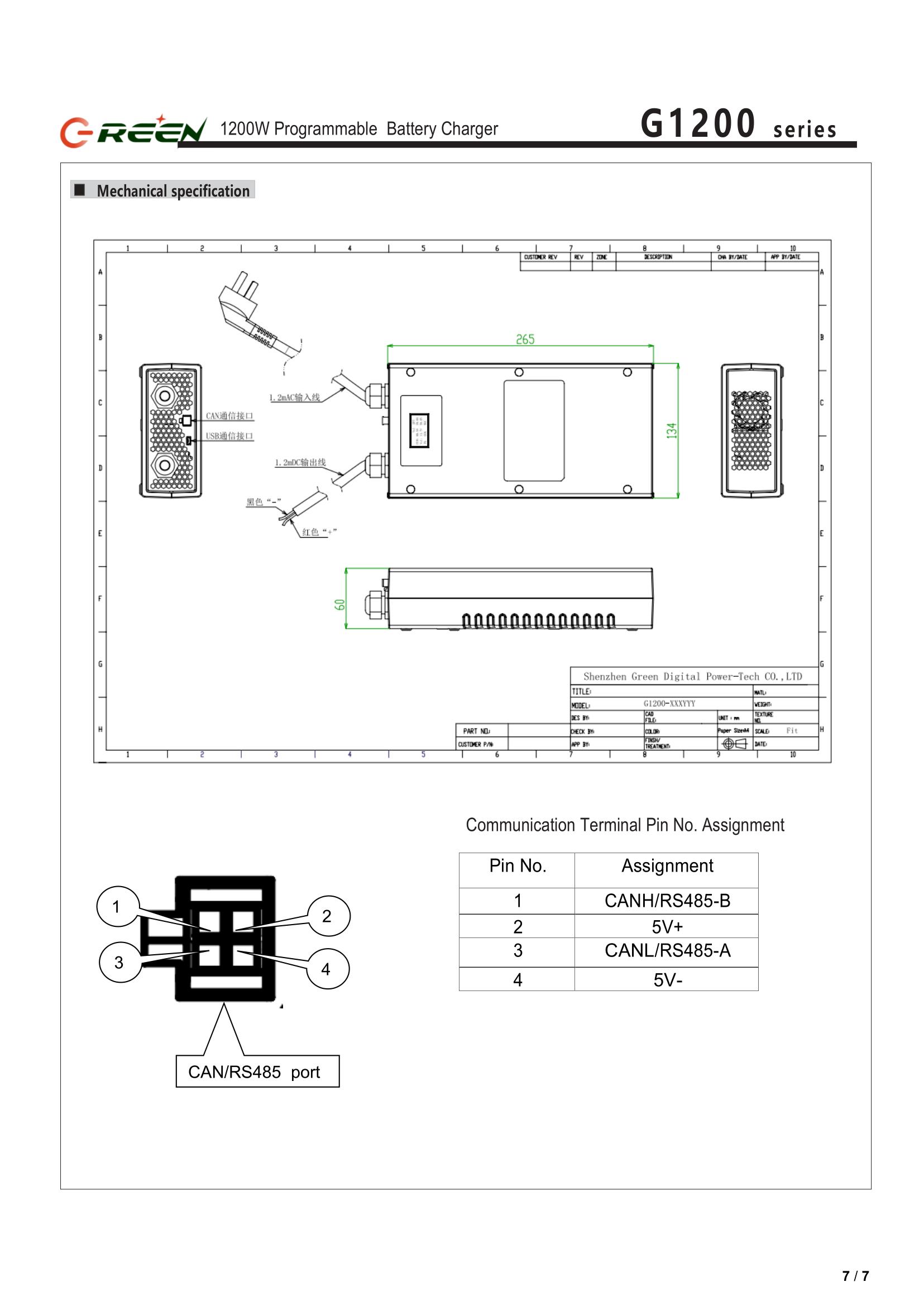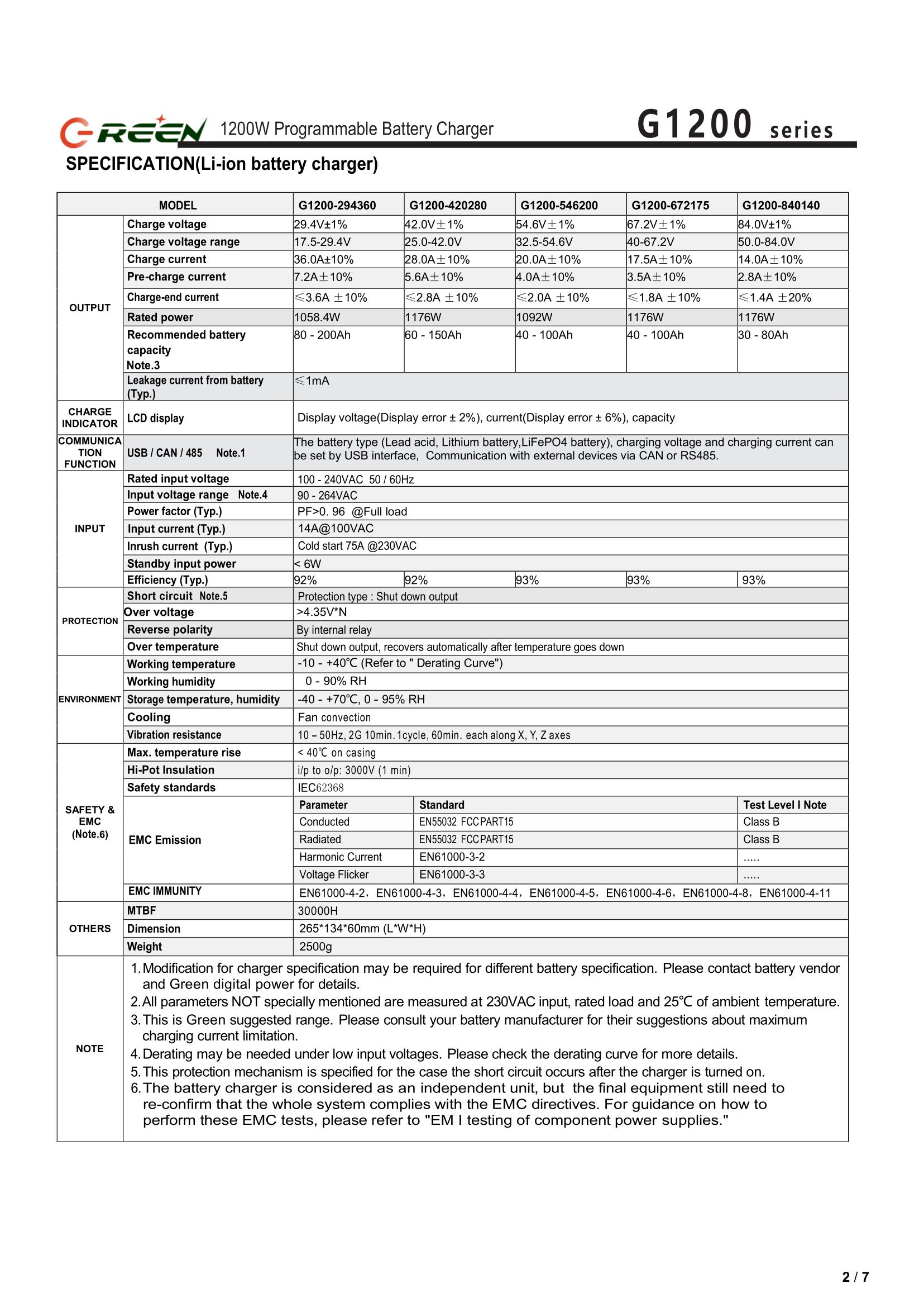 | G1200-588200 | 58.8V +-1% | 20A +-7% | 2.0A +-0.2A | 14S LI-ION 20~200Ah |