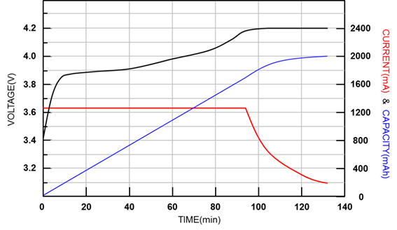 The basic Li-ion charging process is “Two stages”, CC+CV. See right curve. During CC stage, the charger supplies a constant current to the battery until the voltage reaches N*4.2V. In the CV stage, the voltage is held constant, and the current gradually decreases until the battery is fully charged.
