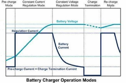 For high-performance lithium-ion battery chargers, we employ “Four-stage” charging strategy, as figure below. The “four-stage” adds a small current pre-charge stage (which helps to extend battery life) at the beginning and add a shut-off stage at the end (which helps to enhance charging safety). Our main chargers using this 4-stage charging process.