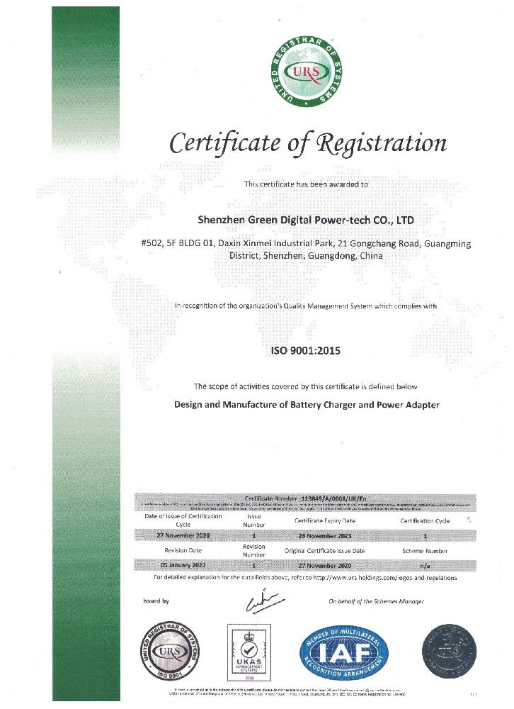 Shenzhen Green Digital Power Tech has passed ISO9001 Certification for power supply and battery charger product. We design, build and service our customer with ···